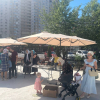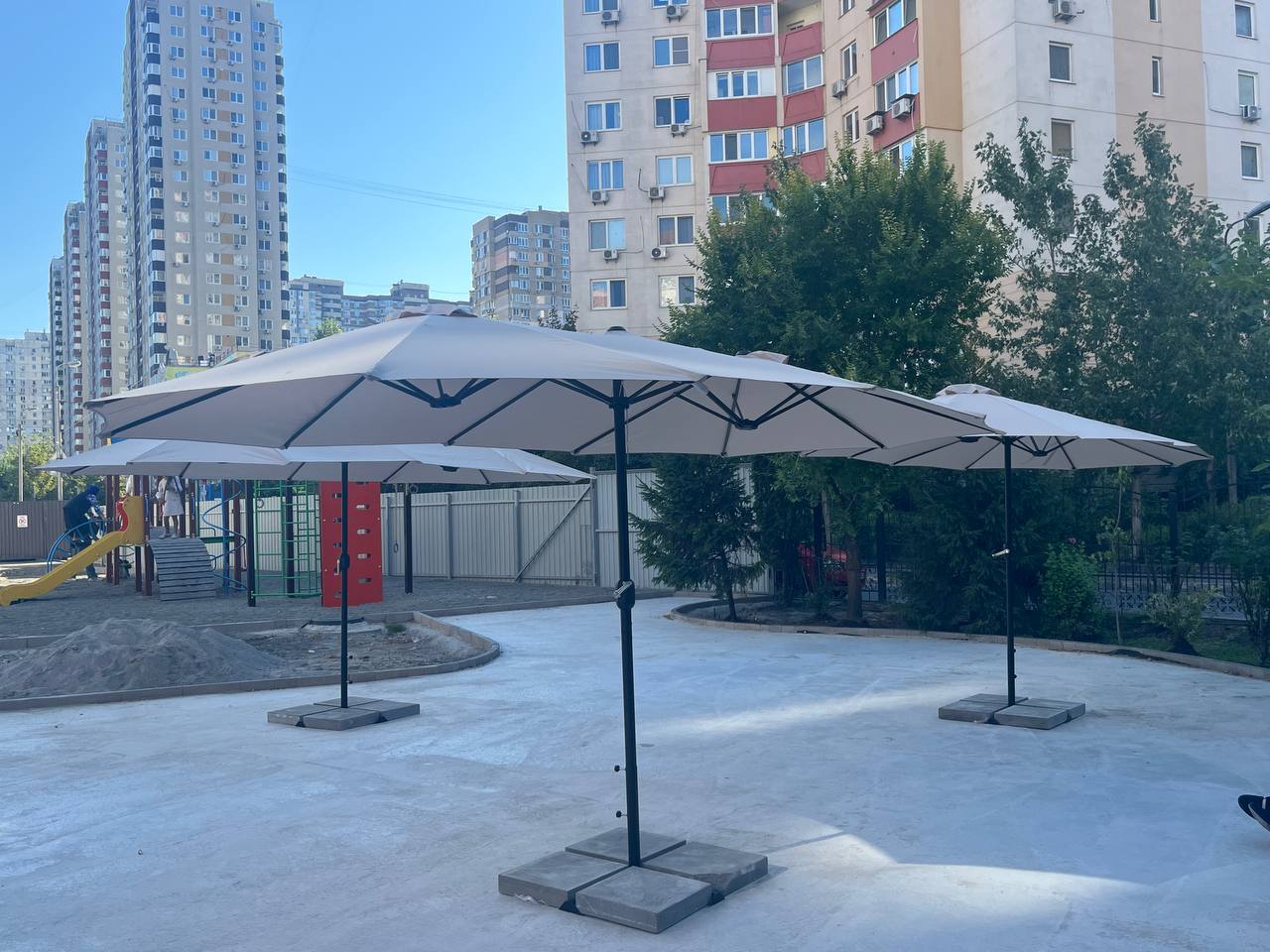 Двойной зонт с размерами 2,7х4,5 прямоугольной формы отлично подойдёт как для обеденного стола так и для шизлонгов.